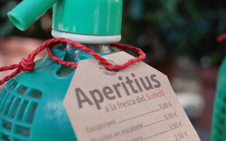 En ocasiones hemos de desarrollar conceptos diferentes para estimular el consumo. Este es el caso de estas interesantes cartas para un restaurante que quiere ofrecer los servicios de aperitivos. Tal y como hacen los bares de toda la vida, la idea consiste en utilizar una botella de sifón como peana. ¿No os parece interesante la combinación entre la utilización de un sifón y una clásica etiqueta de colgar?