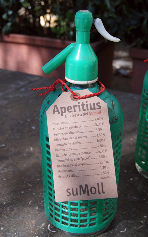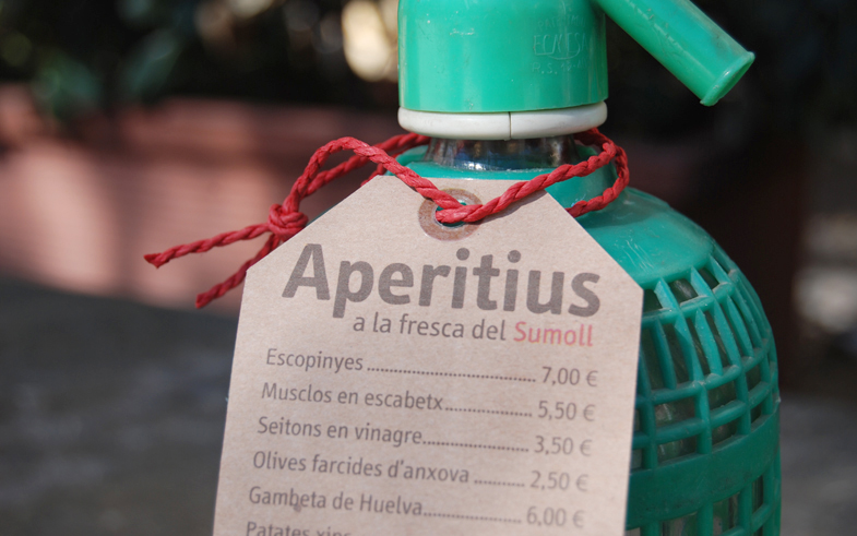 El resultado es sencillo pero a la vez muy directo ya que conseguimos obtener una carta para el bar donde mostrar los aperitivos y vermuts de forma efectiva. Para los que ya tenemos una cierta edad, el sifón de toda la vida nos invita a pedir unas aceitunas, paratas y un vermut completo nos deleitaremos a la “fresca”.